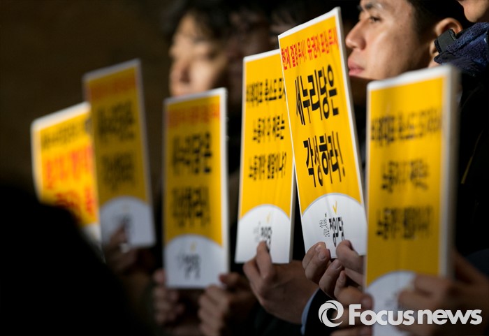 (서울=포커스뉴스) 6일 오전 서울 여의도 국회 로텐더홀 계단에서 심상정 정의당 상임대표 등 지도부 및 의원단이 공정한 선거제도 도입 촉구 및 새누리당 규탄 기자회견을 하고 있다.