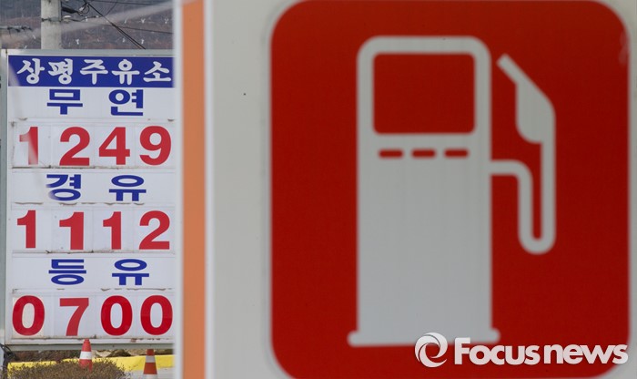(음성=포커스뉴스) 국제유가 하락으로 휘발윳값이 7년 만에 최저가를 보인 가운데 6일 오전 11시 기준 충북 음성군 감곡면에 위치한 주유소에서 전국 최저가인 리터당 휘발유는 1249원, 경유는 1112원에 판매되고 있다.