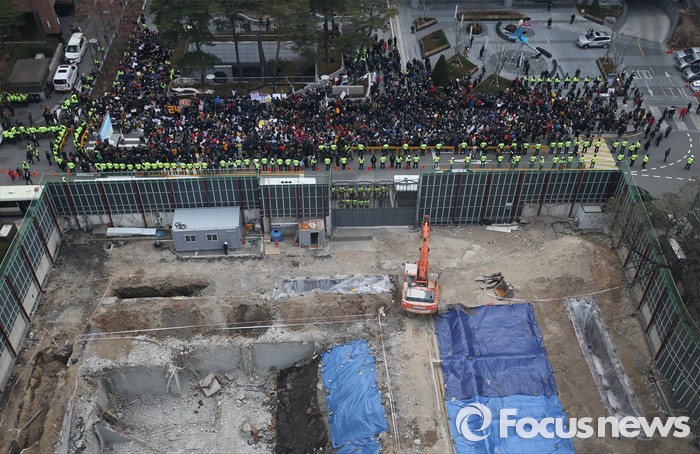 (서울=포커스뉴스) 24주년을 맞이한 일본군 위안부 문제해결을 위한 1212차 정기수요집회가 열린 6일 오후 서울 종로구 구 일본대사관 앞에서 참가자들이 집회에 참여하고 있다.