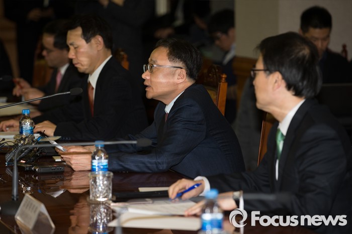 (서울=포커스뉴스) 북한이 수소탄 실험에 성공했다고 발표한 6일 오후 서울 중구 은행회관에서 열린 긴급 거시경제금융회의에 참석한 정찬우(가운데) 금융위 부위원장이 모두발언 하고 있다.