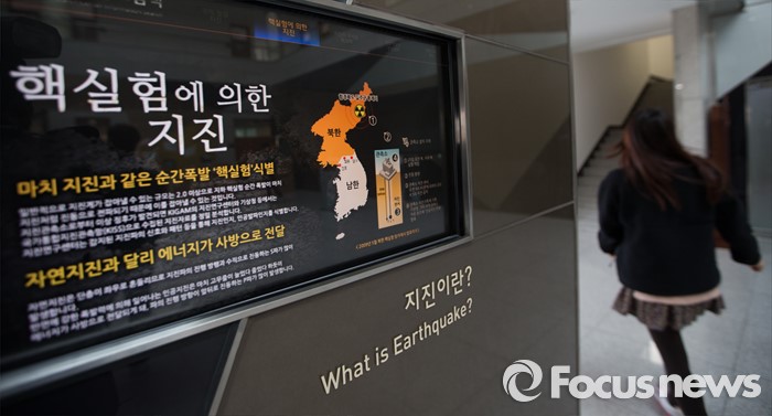 (대전=포커스뉴스) 북한이 수소탄 핵실험을 성공했다고 발표한 가운데 6일 오후 대전 유성구 한국지질자원연구원 로비에 설치된 정보검색 모니터에 핵실험에 의한 지진 관련 정보가 보이고 있다.