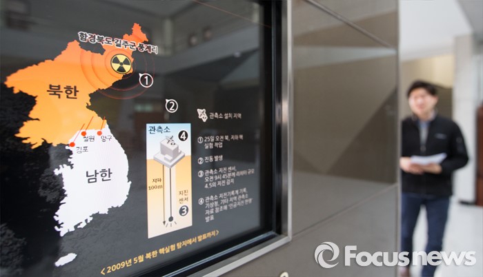 (대전=포커스뉴스) 북한이 수소탄 핵실험을 성공했다고 발표한 가운데 6일 오후 대전 유성구 한국지질자원연구원 로비에 설치된 정보검색 모니터에 핵실험에 의한 지진 관련 정보가 보이고 있다.