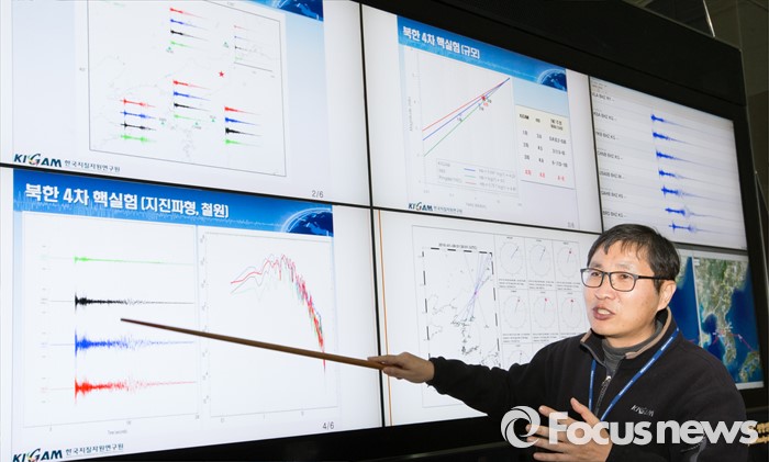 (대전=포커스뉴스) 북한이 수소탄 핵실험을 성공했다고 발표한 가운데 6일 오후 대전 유성구 한국지질자원연구원 지진연구센터에서 신진수 국토지질연구본부장이 북한 수소탄 실험에 대한 조사결과 브리핑을 하고 있다.