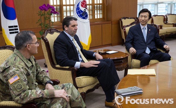 (서울=포커스뉴스) 북한이 첫 수소탄 실험에 성공했다고 발표한 6일 오후 윤병세 외교부 장관이 서울 도렴동 외교부를 방문한 마크 리퍼트 주한 미국대사를 만나 북한의 4차 핵실험에 대한 대응방안을 논의하고 있다.