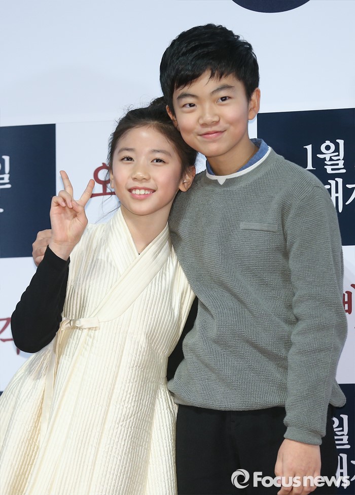 (서울=포커스뉴스) 6일 오후 서울 광진구 롯데시네마 건대입구점에서 열린 영화 '오빠생각' 언론시사회에 참석한 아역배우 이레(인쪽)와 정준원이 포토타임을 갖고 있다.