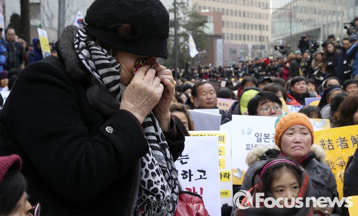 이들은 "그간 한일 재계회의를 통해 전경련은 양국의 경제협력 강화와 관계개선에 기여해 왔다"며 "앞으로도 한일 경제협력관계를 더욱 공고히 해 양국이 지속적인 성장을 이어나가도록 힘을 모으겠다"고 말했다.6일 서울 종로구 옛 일본대사관 앞에서 열린 제1212차 정기수요집회에서 이용수 할머니가 손수건으로 눈가를 훔치고 있다. 2016.01.06 김흥구 기자