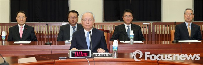(서울=포커스뉴스) 이병호(앞줄 가운데) 국가정보원장이 6일 오후 서울 여의도 국회에서 북한 수소탄 핵실험과 관련, 현안보고를 위해 소집된 정보위원회 전체회의에 출석해 자리에 앉아 있다.
