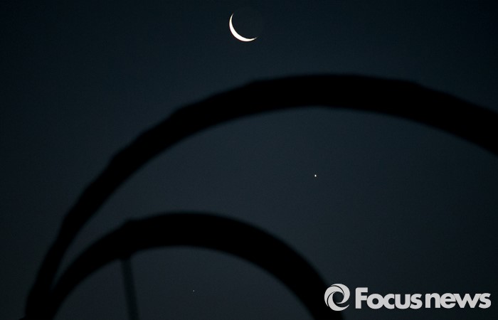 (서울=포커스뉴스) 7일 오전 서울 여의도 국회에서 바라본 하늘에 그믐달과 함께 샛별이 빛나고 있다.