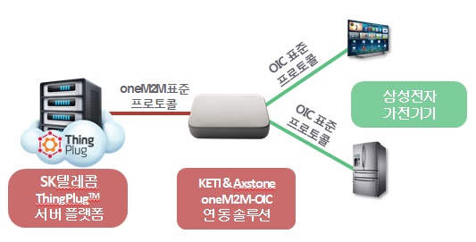 SK텔레콤과 삼성전자, KETI(전자부품연구원), Atmel(아트멜, 반도체 솔루션 개발업체), Axstone(액스톤, 국내 IoT 모듈 설계 업체)이 참여했다. 시연에는 SK텔레콤의 원M2M 기반 IoT 플랫폼인 씽플러그(ThingPlug), 삼성전자의 OIC 표준 기반 가전기기(냉장고, TV 등) 등이 사용됐다. 5사는 서로 다른 IoT 표준 기반의 서비스를 연동해 스마트폰으로 가전기기를 제어하는데 성공했다.