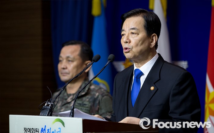 (서울=포커스뉴스) 한민구 국방부 장관이 7일 오전 서울 용산구 국방부에서 북한 수소탄 실험에 대한 한미 양국 공조 방안을 발표하고 있다.