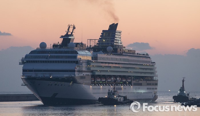 (동해=포커스뉴스) 강원도가 첫 크루즈 손님을 맞았다. 7일 오전 강원 동해항 중앙부두에 중국 천해크루즈사의 스카이씨 골든 에라호가 승객 1천800여 명을 싣고 입항했다. 스카이시 골든 에라는 승객 정원 1814명, 승무원 843명, 전장 248m, 폭 32m의 7만 t급 크루즈다.