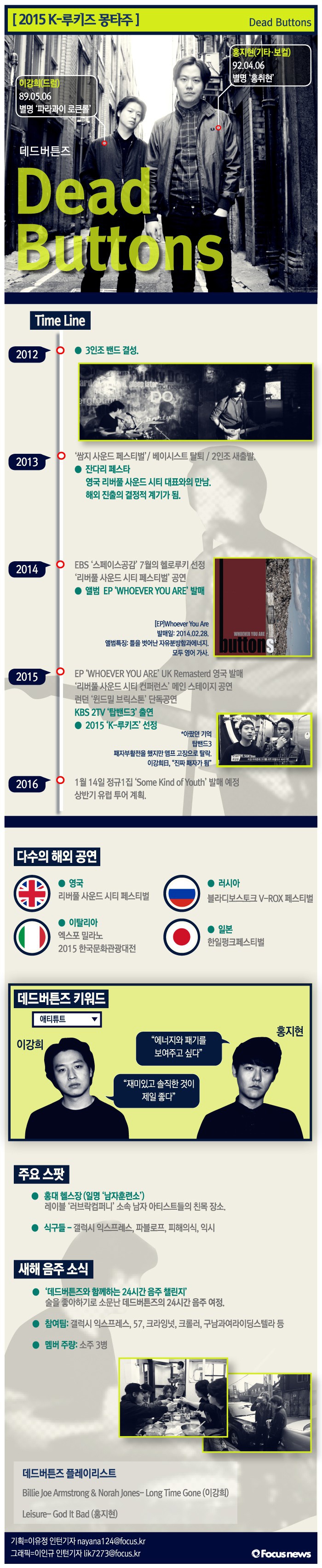 '2015 K-루키즈 파이널 콘서트'를 앞두고 6팀의 인디밴드를 직접 만나봤다. 첫 번째 팀 데드버튼즈(Dead Buttons)다.