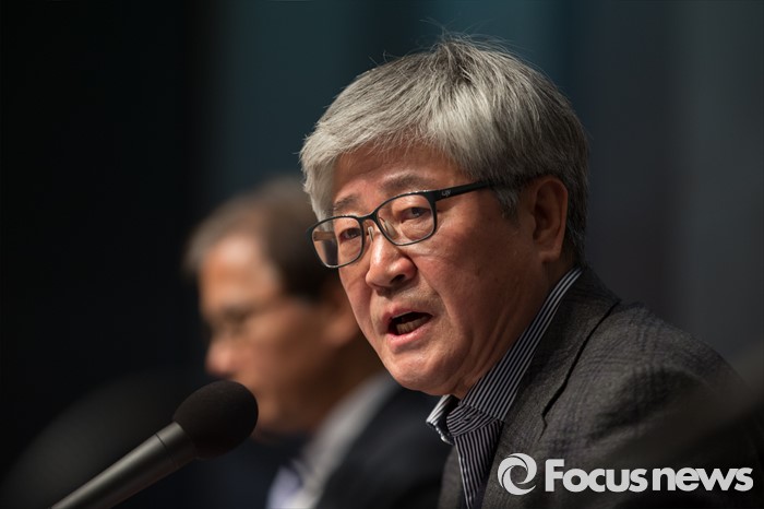 (서울=포커스뉴스) 인터넷 포털 네이버와 카카오의 뉴스 제휴 심사를 담당할 '뉴스제휴평가위원회'가 7일 오전 서울 중구 프레스센터에서 '네이버-카카오 뉴스 제휴 및 제재 심사 규정'을 발표하는 기자간담회를 진행하고 있다. 허남진 위원장이 세부 규정에 대해 발표하고 있다.