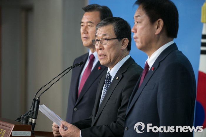 (서울=포커스뉴스) 황진하 새누리당 공천제도특별위원장이 7일 오전 서울 여의도 국회 정론관에서 특위 회의 결과에 대한 브리핑을 하고 있다. 왼쪽부터 홍문표 의원, 황 위원장, 박종희 제2사무부총장.