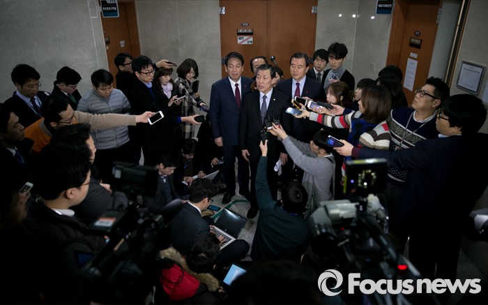 | △ 취재진 질문 답하는 새누리당 공천제도특위 |