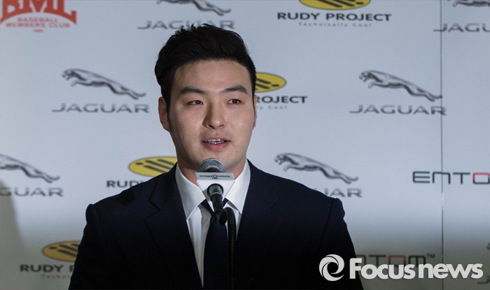 (서울=포커스뉴스) 미네소타 트윈스에 입단한 박병호가 7일 오전 서울 서대문구 그랜드힐튼호텔에서 기자회견을 열고 메이저리그 진출에 대한 소감과 포부를 밝히고 있다.
