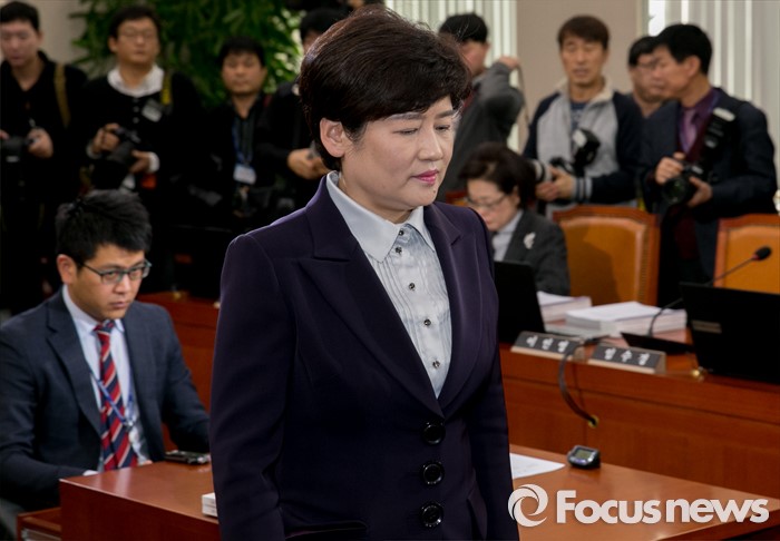 (서울=포커스뉴스) 강은희 여성가족부 장관 후보자가 7일 오전 서울 여의도 국회에서 열린 인사청문회에 참석해 선서문을 전달한 뒤 자리로 향하고 있다.