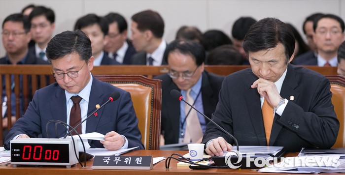 (서울=포커스뉴스) 7일 오후 서울 여의도 국회에서 북한의 수소탄 핵실험 발표 등에 관한 긴급 현안보고를 위해 열린 외교통일위원회 전체회의에 참석한 윤병세(오른쪽) 외교부 장관과 홍용표 통일부 장관이 의원들의 발언을 듣고 있다.