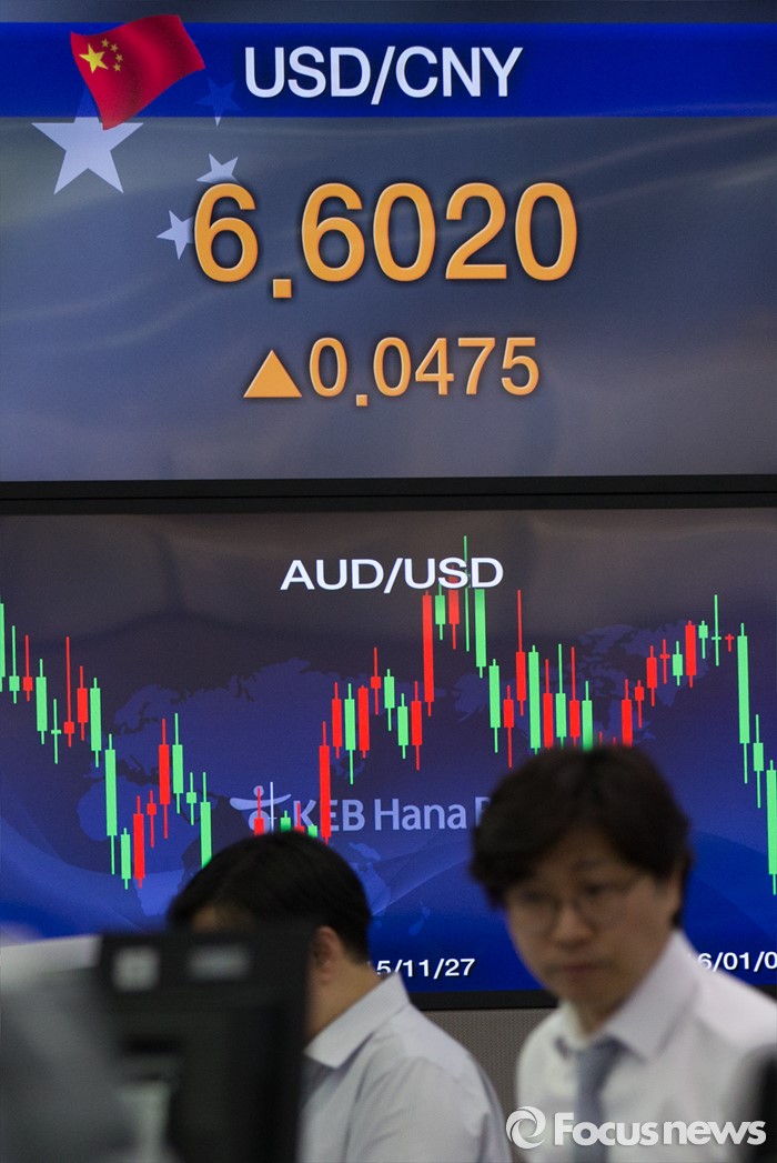 (서울=포커스뉴스) 중국 증시가 7일 또다시 폭락했다. 7일 오후 서울 중구 KEB하나은행 딜링룸에서 직원들이 분주히 움직이고 있는 가운데 코스피지수는 21.10포인트 떨어진 1904.33으로 하락,원 달러 환율은 4개월여만에 1200원을 돌파한 1200.60으로 마감했다.