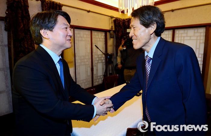 (서울=포커스뉴스) 더불어민주당 탈당 후 신당 창당을 준비하고 있는 안철수 무소속 의원이 7일 오후 서울 종로구 경운동 민다가헌에서 한상진 교수와 만나 악수를 나누고 있다.