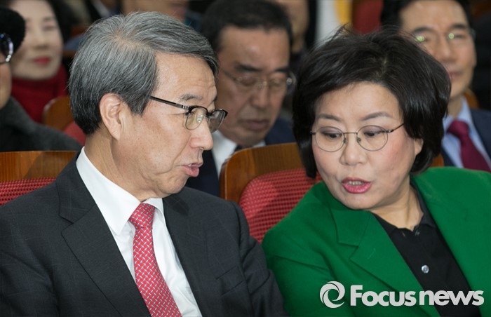 (서울=포커스뉴스) 7일 오후 서울 여의도 국회 의원회관에서 동반성장연구소 주최로 열린 '동반성장과 경제민주화, 잘 되고 있는가?' 포럼에 참석한 정운찬(왼쪽) 전 총리와 이혜훈 전 새누리당 의원이 대화하고 있다.