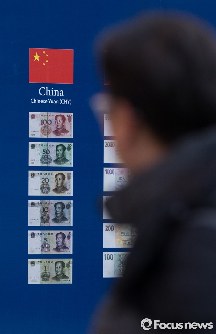 (서울=포커스뉴스) 중국 증시가 또 다시 폭락했다. 위안화가 8일 연속 절하된 7일 오후 서울 중구 KEB하나은행 앞 화폐 벽보 앞을 시민들이 지나가고 있다.