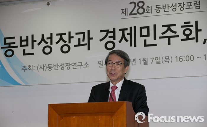 (서울=포커스뉴스) 7일 오후 서울 여의도 국회 의원회관에서 동반성장연구소 주최로 열린 '동반성장과 경제민주화, 잘 되고 있는가?' 포럼에 참석한 정운찬 전 총리가 인사말을 하고 있다.