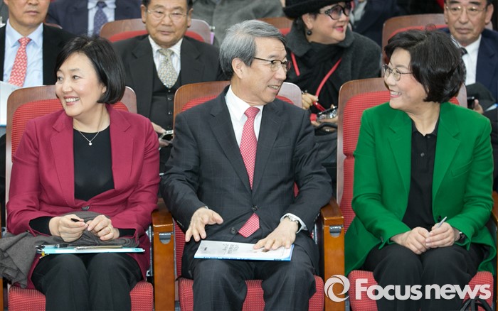 | △ 여성 정치인 사이 자리한 정운찬 전 총리 |