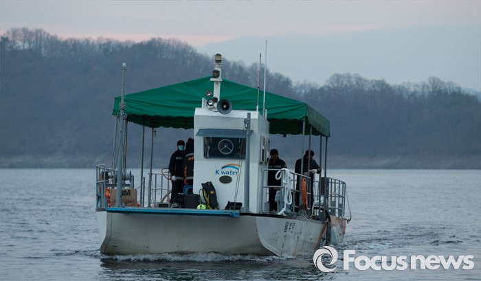(대전=포커스뉴스) 7일 오후 1시 53분께 대전 대덕구 대청호 일원에서 대전 동구청 유해조수방지단 보트가 침몰해 2명이 구조되고 2명이 실종된 가운데 대전·충북소방본부 119구조대가 날이 어두워지자 실종자 수색 작업을 중단하고 돌아오고 있다.