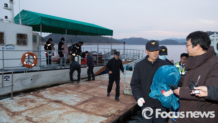 (대전=포커스뉴스) 7일 오후 1시 53분께 대전 대덕구 대청호 일원에서 대전 동구청 유해조수방지단 보트가 침몰해 2명이 구조되고 2명이 실종된 가운데 대전·충북소방본부 119구조대가 날이 어두워지자 실종자 수색 작업을 중단하고 돌아오고 있다.