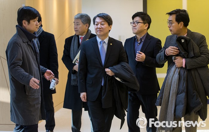 (서울=포커스뉴스) 8일 오전 서울 마포구 안철수 무소속 의원 당사 대회의실에서 열린 창당준비점검회의에 안 의원(가운데)이 참석하고 있다.