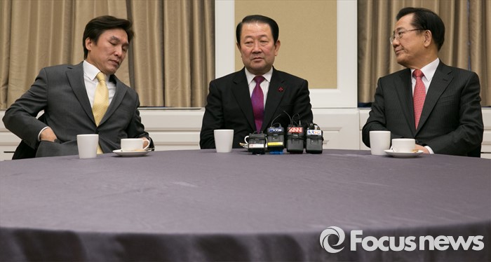 (서울=포커스뉴스) 더불어민주당을 탈당해 신당을 추진 중인 김민석(왼쪽부터) 전 의원, 박주선 의원, 박준영 전 전남지사가 8일 오전 서울 여의도 국회 귀빈식당에서 신당 통합 논의를 위해 만나 대화하고 있다.