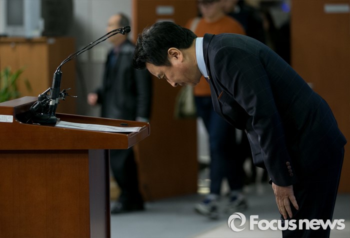 (서울=포커스뉴스) 김영환 더불어민주당 의원이 8일 오전 서울 여의도 국회 정론관에서 탈당 기자회견에 앞서 인사하고 있다.