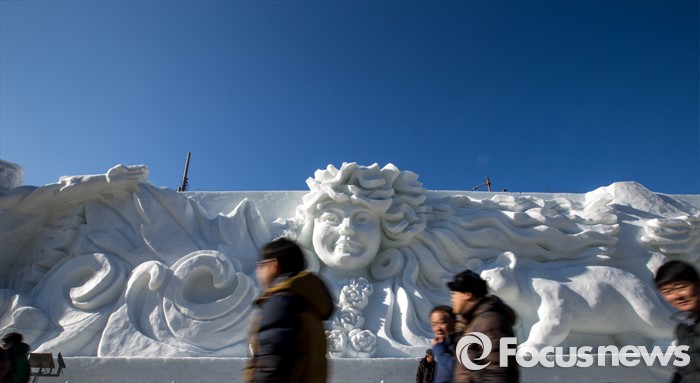 (화천=포커스뉴스) 산천어축제를 하루 앞둔 8일 오후 강원도 화천군 산천어축제 행사장인 화천천에 얼음조각 작품이 전시되고 있다. 산천어축제는 오는 9일부터 31일까지 강원도 화천군 화천천 및 3개읍면 일원에서 진행될 예정이다.