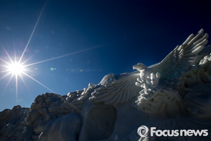 (화천=포커스뉴스) 산천어축제를 하루 앞둔 8일 오후 강원도 화천군 산천어축제 행사장인 화천천에 얼음조각 작품이 전시되고 있다. 산천어축제는 오는 9일부터 31일까지 강원도 화천군 화천천 및 3개읍면 일원에서 진행될 예정이다.