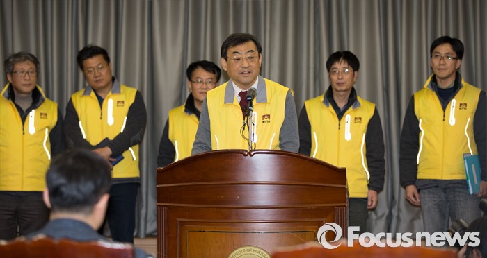 (대전=포커스뉴스) 8일 저녁 대전 유성구 한국원자력안전기술원 중회의실에서 김무환 한국원자력안전기술원장이 북한 핵실험 이후 반사성핵종 탐지·분석 결과 브리핑을 하고 있다.