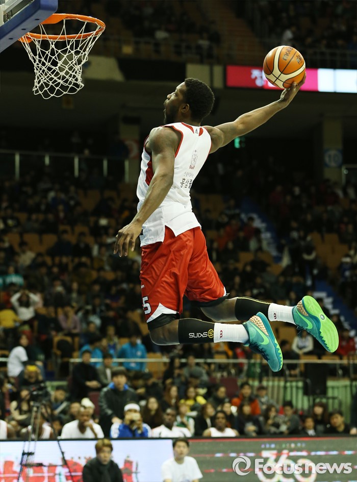 (서울=포커스뉴스) 10일 서울 잠실실내체육관에서 열린 2015-2016 프로농구 올스타전 덩크슛 콘테스트 예선에서 마리오 리틀이 화려한 덩크 묘기를 보이고 있다.