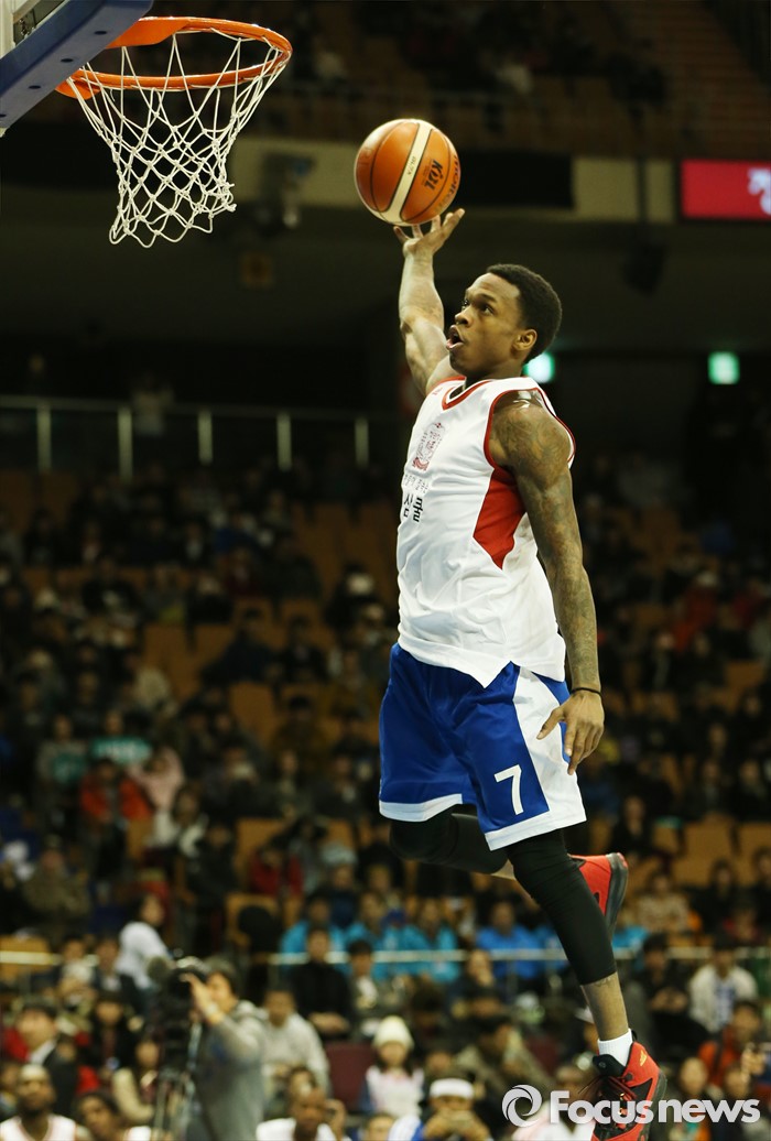 (서울=포커스뉴스) 10일 서울 잠실실내체육관에서 열린 2015-2016 프로농구 올스타전 덩크슛 콘테스트 예선에서 조 잭슨이 원핸드 덩크슛을 시도하고 있다.