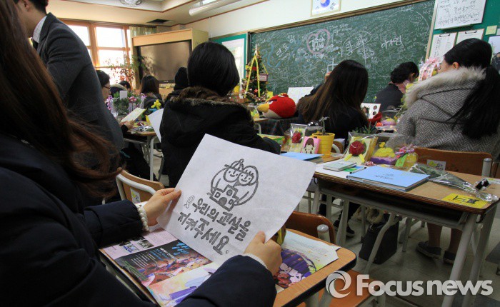 (안산=포커스뉴스) 10일 오후 경기도 안산 단원고 '4.16 기억의 교실'에서 유가족과 시민단체레서마련한세월호 참사 희생학생들을 위한 겨울방학식이 열리고 있다. 안산단원고 세월호 피해자 모임인 4.16 유가족협의회 회원들은12일로 예정된 단원고 졸업식에 불참하는 대신 시민들과 2014년 4월 16일 세월호 참사로 희생된 학생과 교사들이 사용하던 교실과 교무실인 '4.16 기억의 교실'에서 명예 3학년 1반부터 10반 교실까지 자리 앉기, 출석 부르기, 방학식 메시지, 안산분향소 방문 등 순으로 방학식을 진행했다. <사진제공= 이관희사진가>