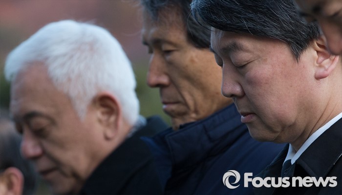(서울=포커스뉴스) '국민의당' 창당을 추진하는 안철수(오른쪽부터) 의원, 한상진 국민의당 공동창당준비위원장, 김한길 의원이 11일 오전 서울 동작구 국립서울현충원을 방문해 묵념을 하고 있다.