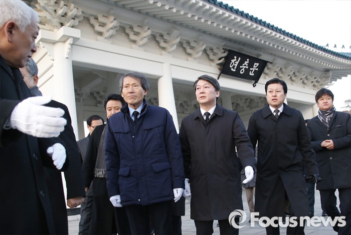 (서울=포커스뉴스) '국민의당' 창당을 준비중인 안철수(오른쪽 세번째부터) 의원, 한상진 공동창당준비위원장, 김한길 의원 등이 11일 오전 동작구 국립서울현충원 현충탑을 참배한 뒤 버스를 타기 위해 이동하고 있다.