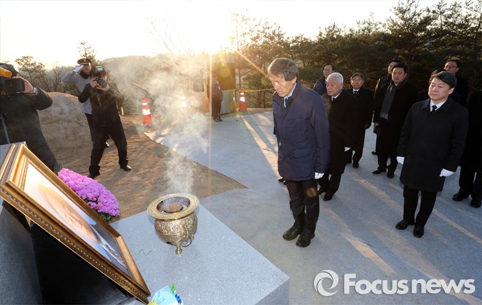 (서울=포커스뉴스) '국민의당' 창당을 추진하는 한상진 공동창당준비위원장이 11일 오전 서울 동작구 국립서울현충원 故 김영삼 전 대통령 묘역을 방문해 참배를 하고 있다.