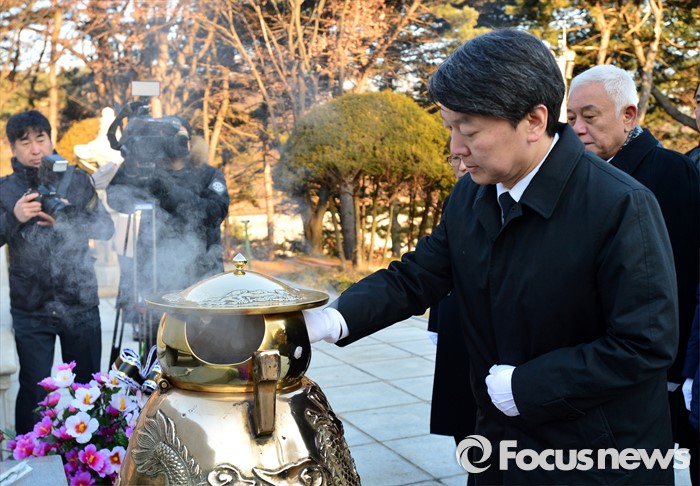 (서울=포커스뉴스) '국민의당' 창당을 준비중인 안철수 의원이 11일 오전 서울 동작구 국립서울현충원 이승만 대통령 묘역을 찾아 분향하고 있다.