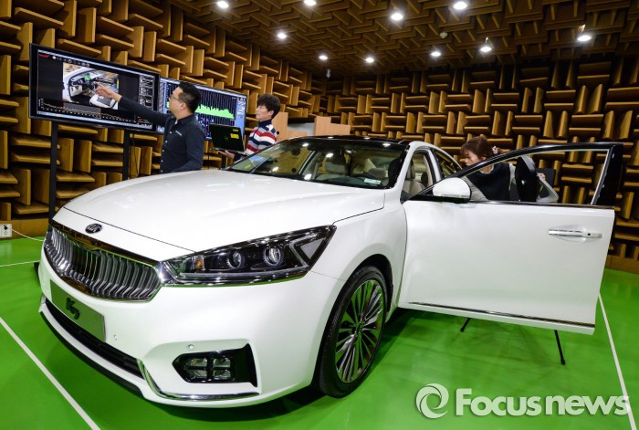 기아차 관계자는 "'올 뉴 K7'은 프리미엄 상품성을 구현하고 최대한 많은 고객들이 경험할 수 있도록 하기 위해 상품 기획부터 개발, 출시 준비 단계까지 온 힘을 다하고 있는 신차"라며 "앞으로 준대형 세단 시장을 압도하는 새로운 패러다임을 제시할 것으로 확신한다"고 말했다.현대기아차 남양연구소 전자연구동에 위치한 반무향실에서 연구원들이 올 뉴 K7에 탑재된 KRELL 사운드 시스템을 테스트하고 있다<사진제공=기아자동차>