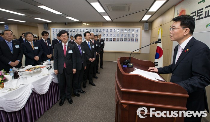 (세종=포커스뉴스) 강호인 국토교통부장관이 11일 오전 세종시 정부세종청사 국토부 대회의실에서 열린 산하단체장 신년인사회에 참석해 인사말을 하고 있다.