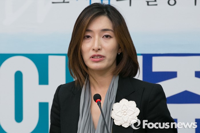(서울=포커스뉴스) 11일 오후 서울 여의도 국회 더불어민주당 당대표회의실에서 김빈 디자이너가 입당 기자회견을 하고 있다.