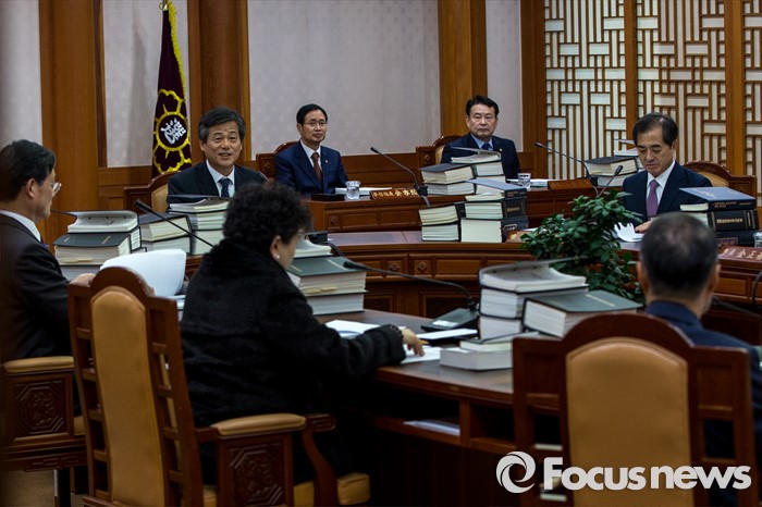 (과천=포커스뉴스) 이인복 중앙선거관리위원회 위원장이 11일 오후 경기도 과천시 중앙선거관리위원회에서 열린 전체회의에 자리해 회의를 주재하고 있다. 이날 이 위원장은 오는 4월 13일 총선 '선거구 실종' 장기화 사태에 따른 대책을 모색할 예정이다.