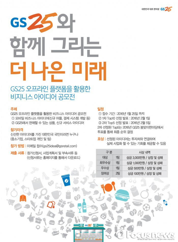 (서울=포커스뉴스)GS리테일이 운영하는 편의점 GS25는 25일까지 제1회 비즈니스 아이디어 공모전을 연다.