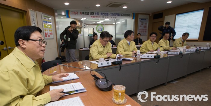 (세종=포커스뉴스) 이동필 농림축산식품부장관이 12일 오전 세종시 농식품부 AI·구제역대책상황실에서 열린 구제역 방역상황 긴급 점검회의에 참석해 이종환 전라북도 축산과장과 영상회의를 하고 있다.