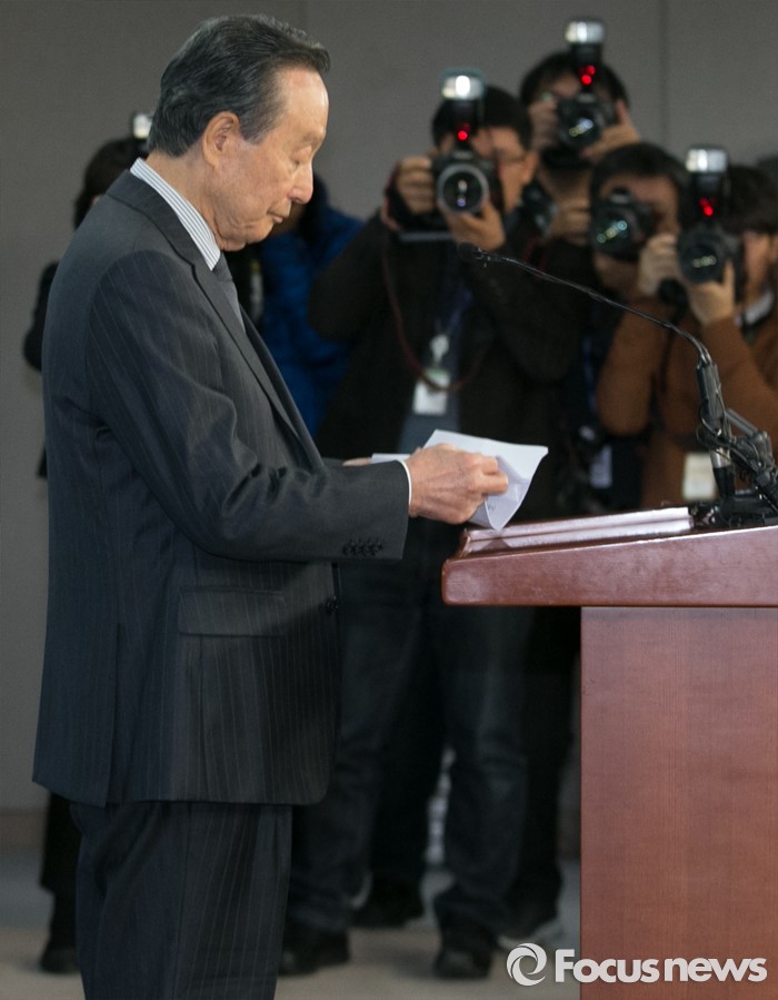 (서울=포커스뉴스) 권노갑 더불어민주당 상임고문이 12일 오전 서울 여의도 국회 정론관에서 탈당 기자회견을 하고 있다.